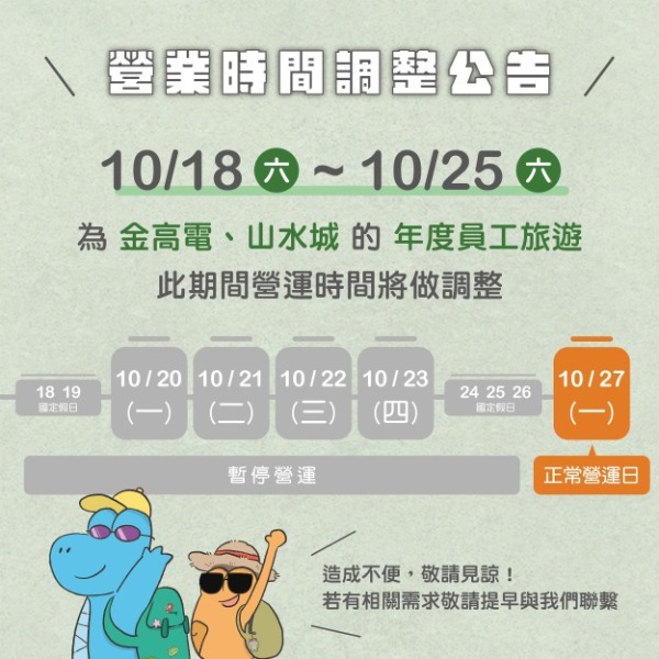 TGP 金高電與山水城 將於 2025/10/18(六)~10/25(六) ,
