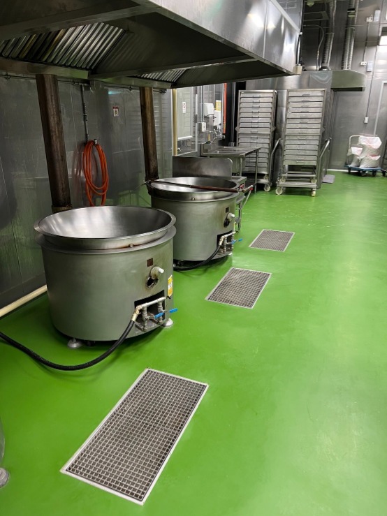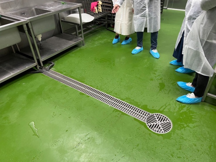 採點狀式區域排水。目標提高廠區清洗效率、省水、